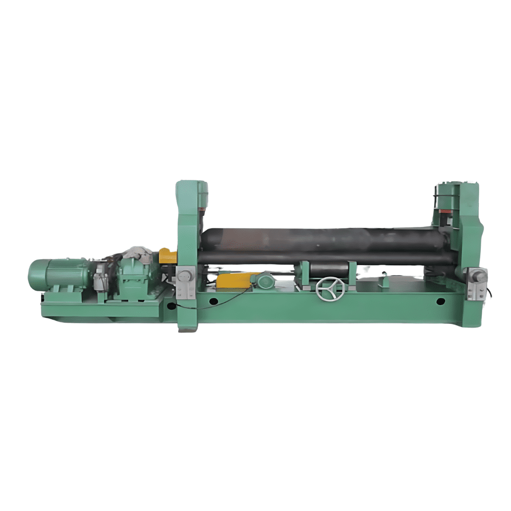 Hydraulic 3-Roller Rolling Machine adalah mesin hidrolik untuk membentuk plat logam menjadi silinder dengan akurasi tinggi. Mesin ini memiliki upper roller yang dapat bergerak secara vertikal dan horizontal, digerakkan oleh motor dan retropack, sementara dua lower rollers memiliki ketinggian konstan sehingga proses feeding dan rolling plat lebih mudah dan stabil.
